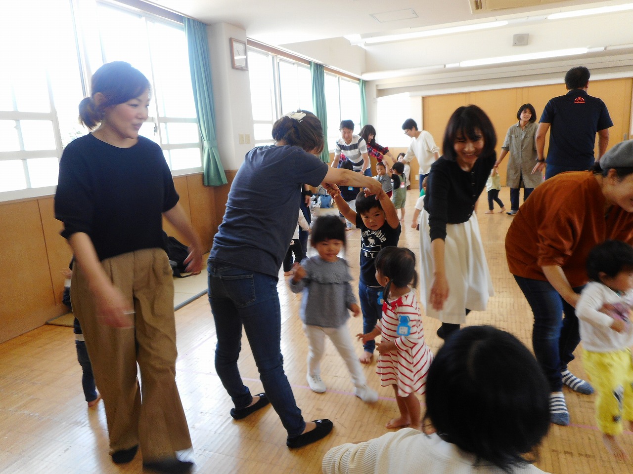 みんなで体を動かして遊ぶ中で、緊張もほぐれ、自然と