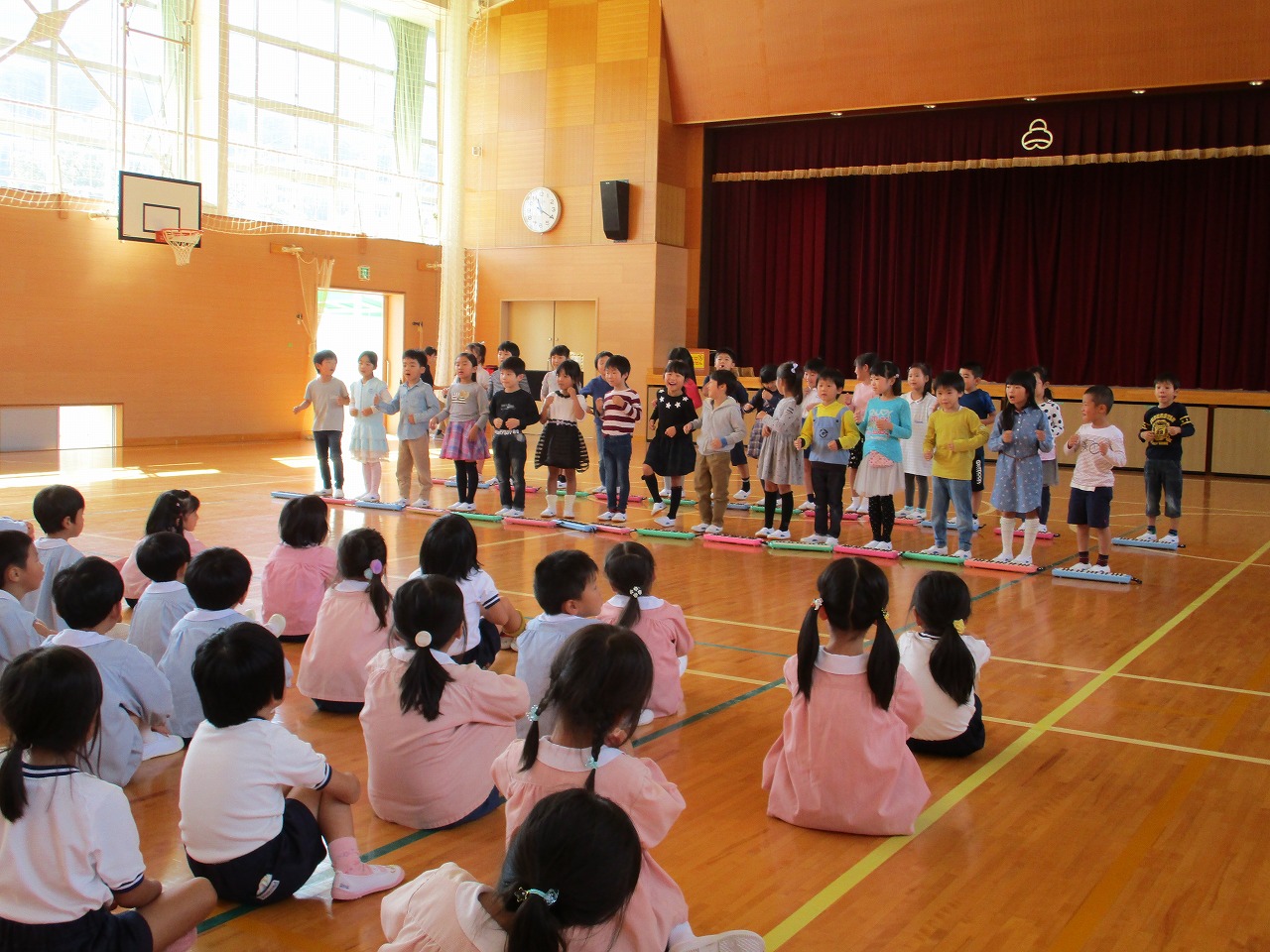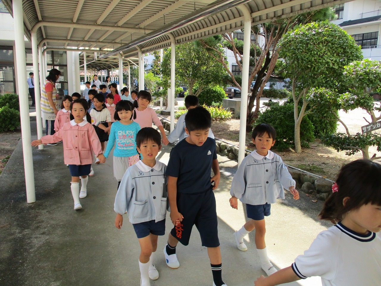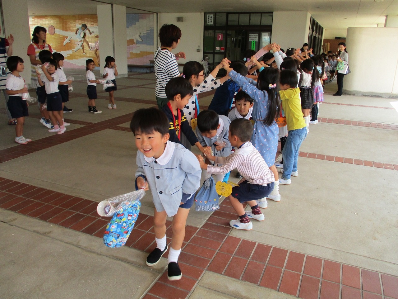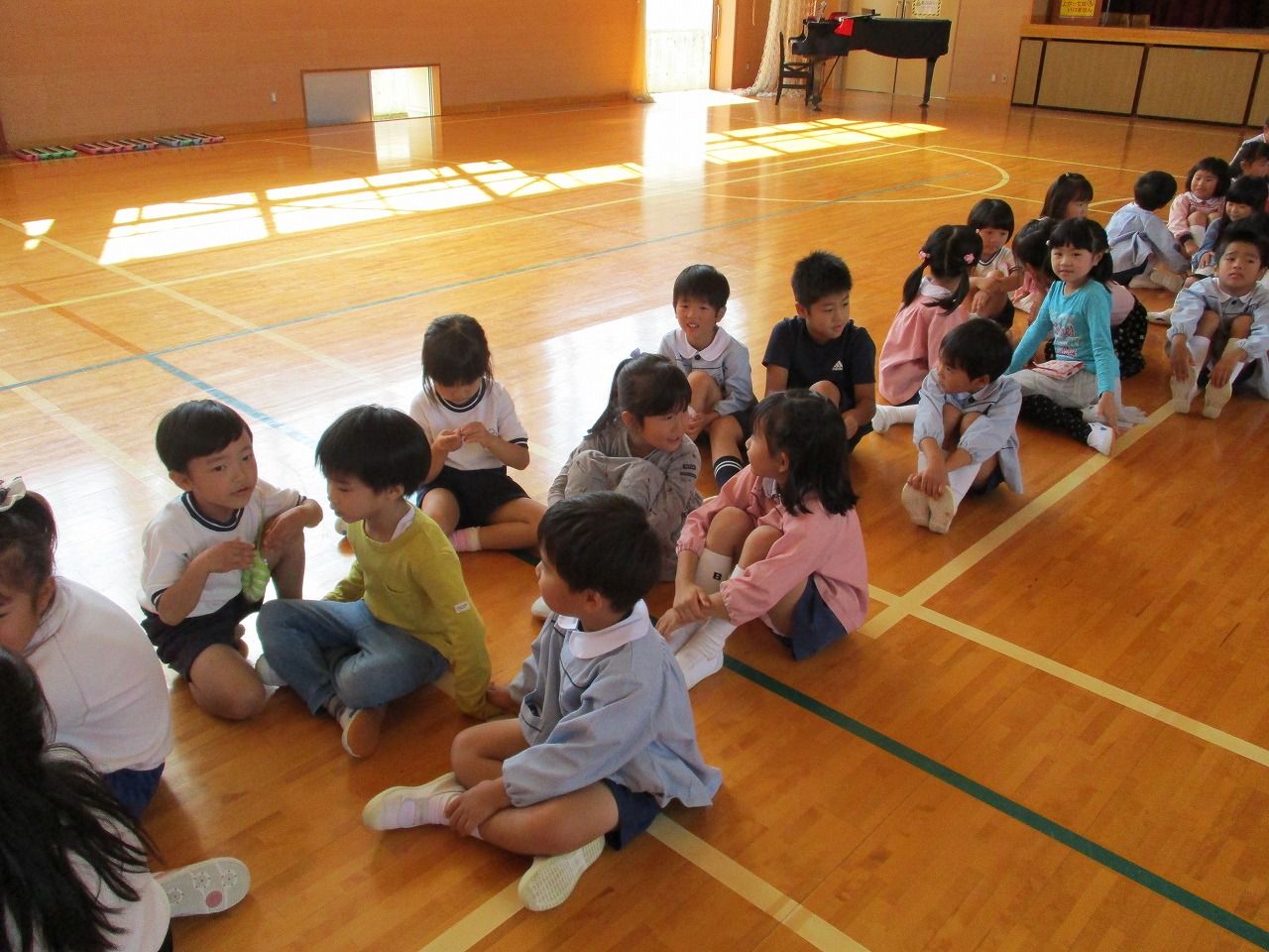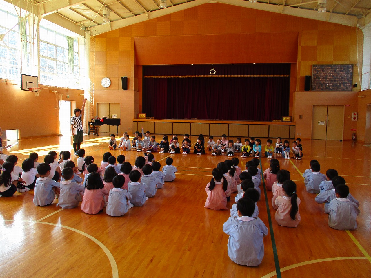 今日は、柳幼稚園の年長組と、洲本幼稚園の年長組、