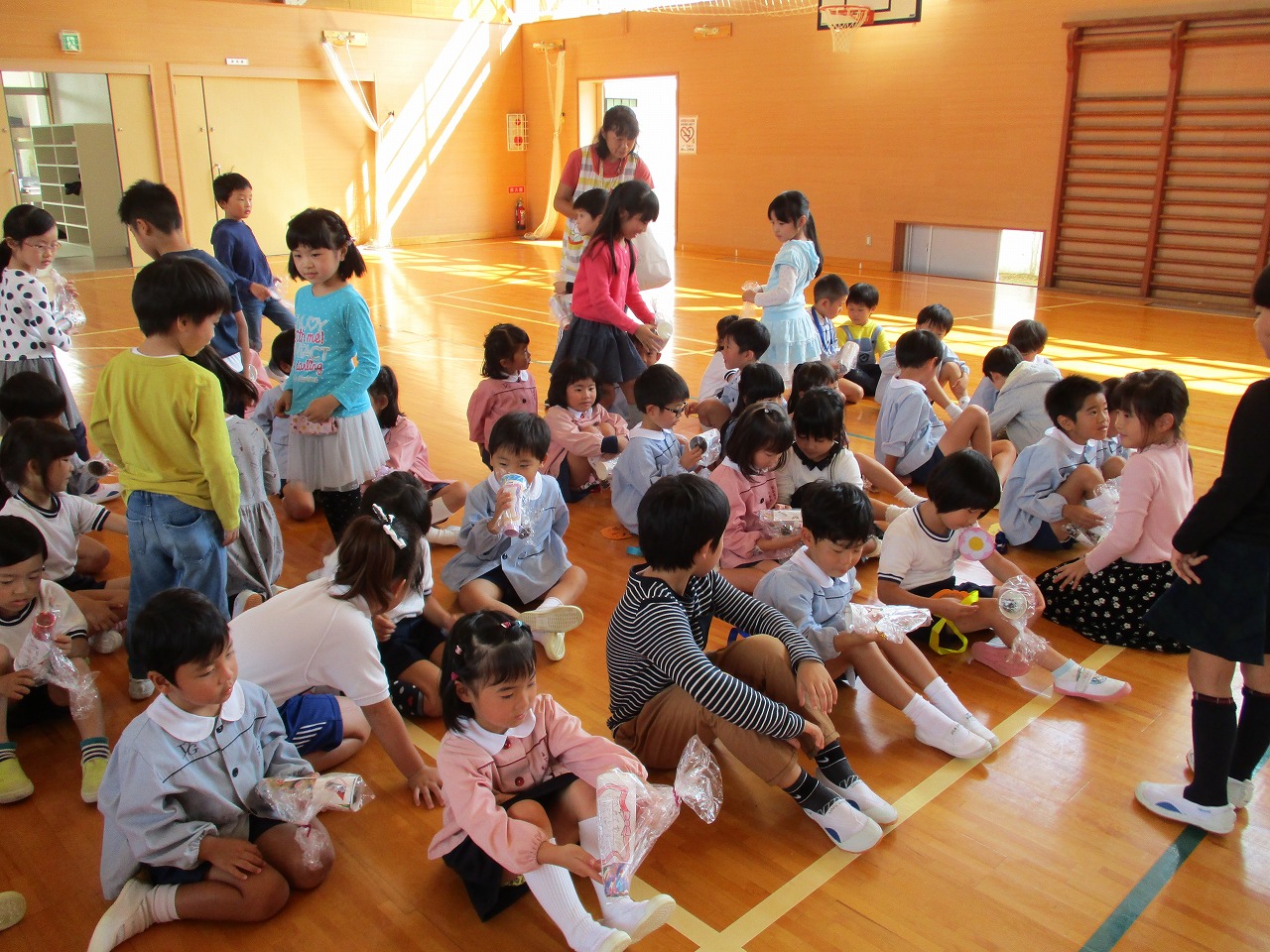 幼稚園からは、ハロウィンの首飾りを贈りました。
