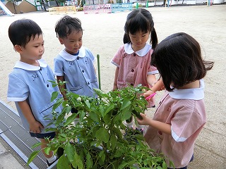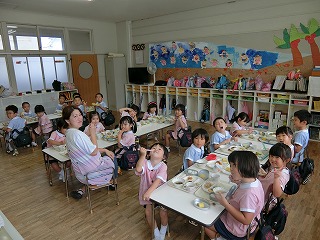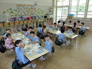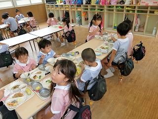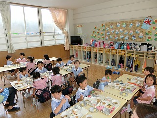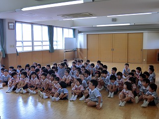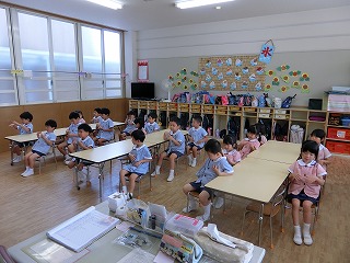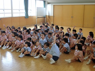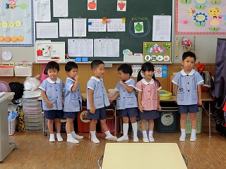 朝の日課活動では、元気一杯挨拶をしたあと、