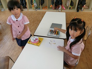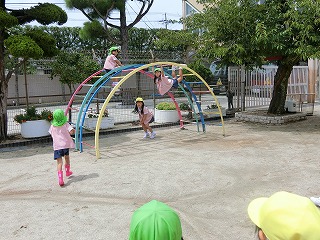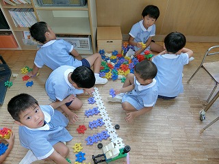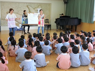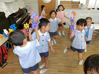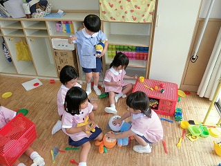 今日は、遊戯室で手遊びをしたり、歌を歌ったり、
