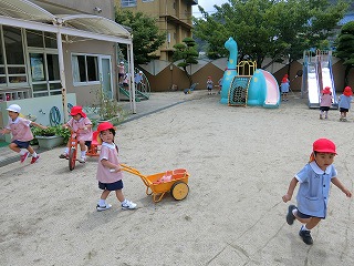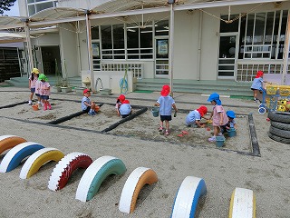 おにごっこに砂遊び、みんなとっても楽しそう !!