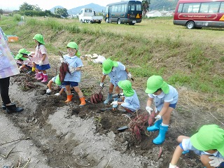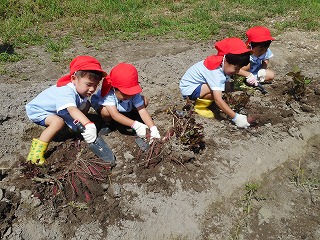 さすが年長組!!いもが見えてくると掘るスピードも速くなりあっという間にたくさんのいもが出てきました。