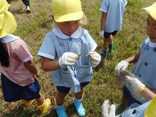 あっというまに終わったので年長組はバッタやこおろぎを見つけて、秋の訪れを感じていました・・・・。