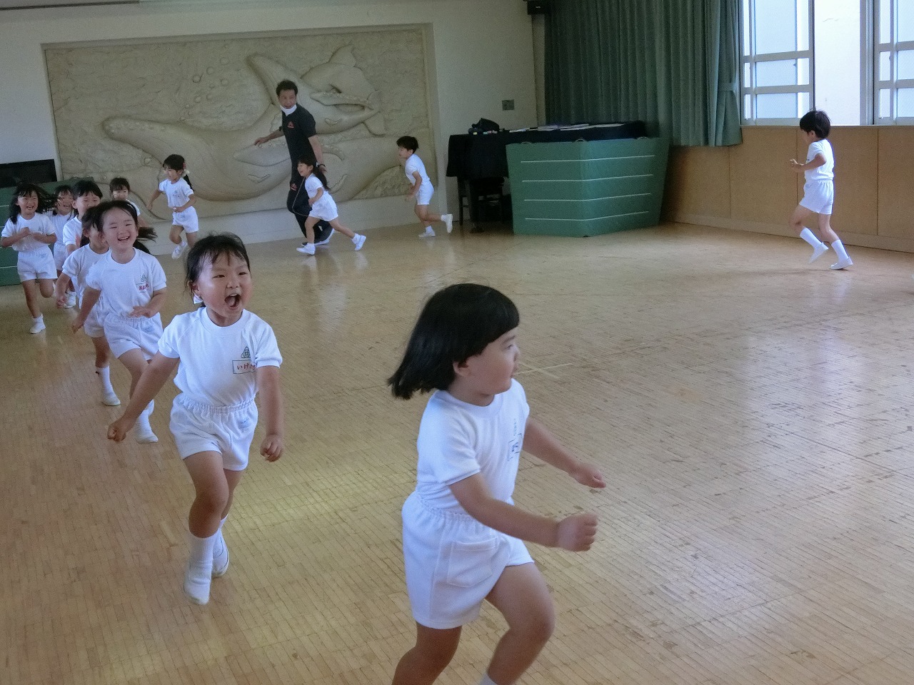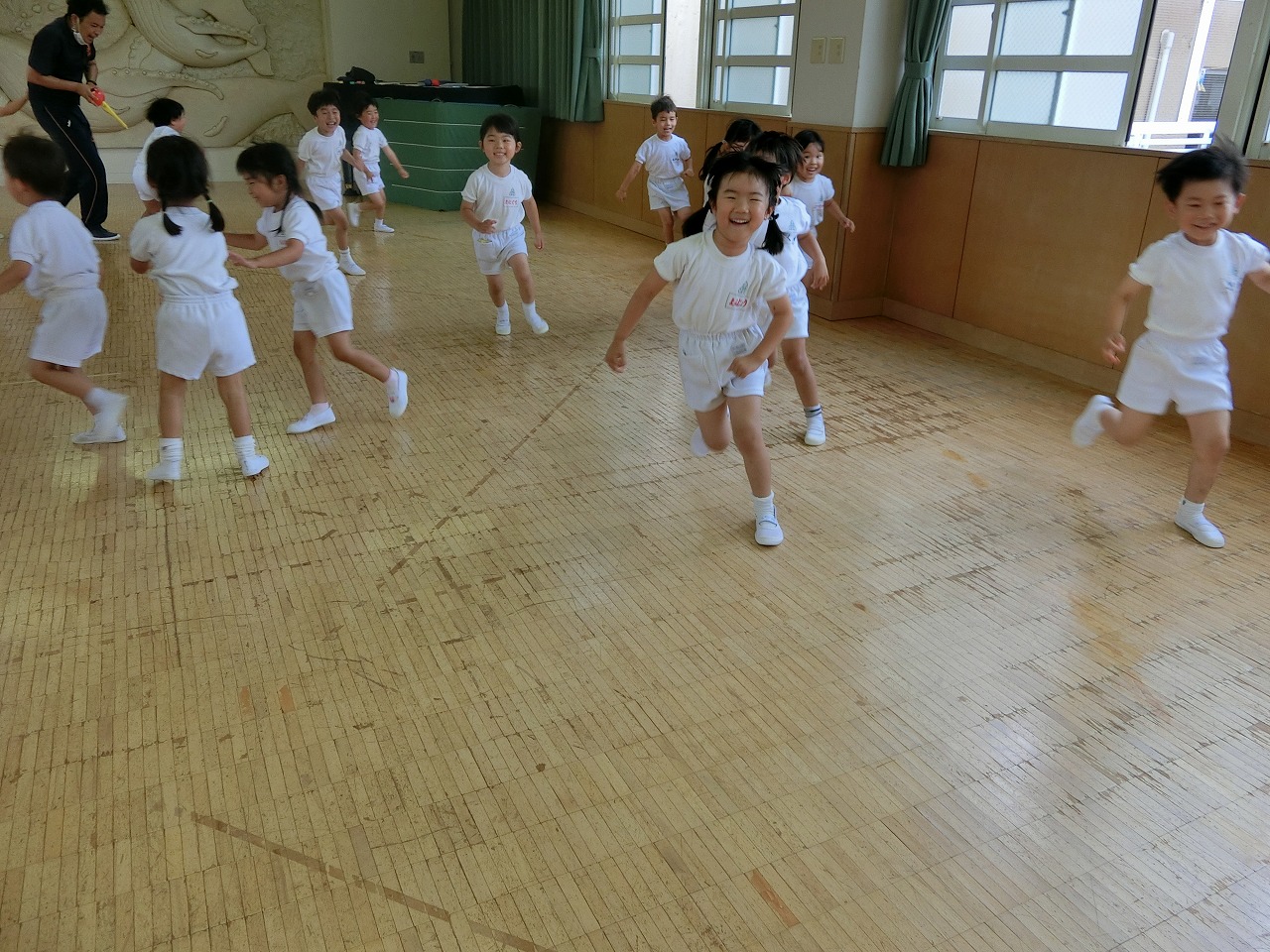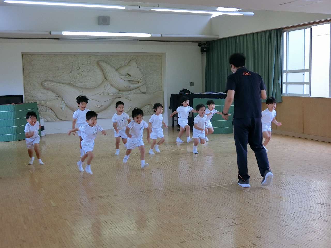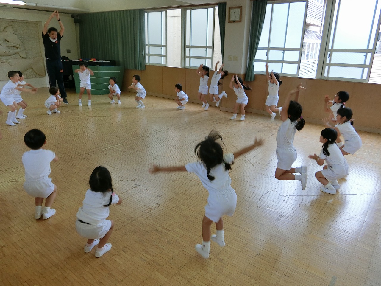 ぴょんぴょん ジャンプをしたり、先生の動きを