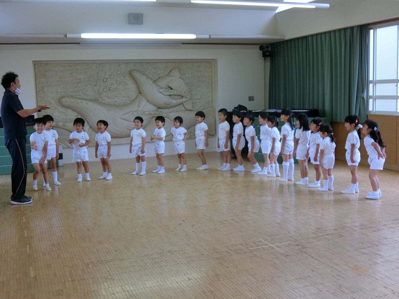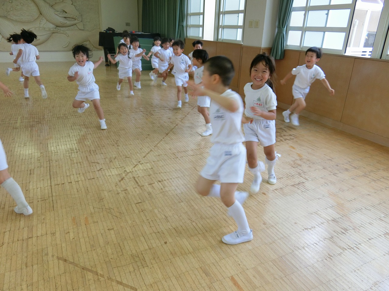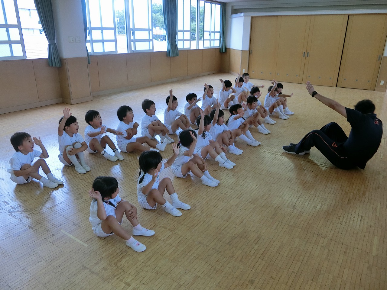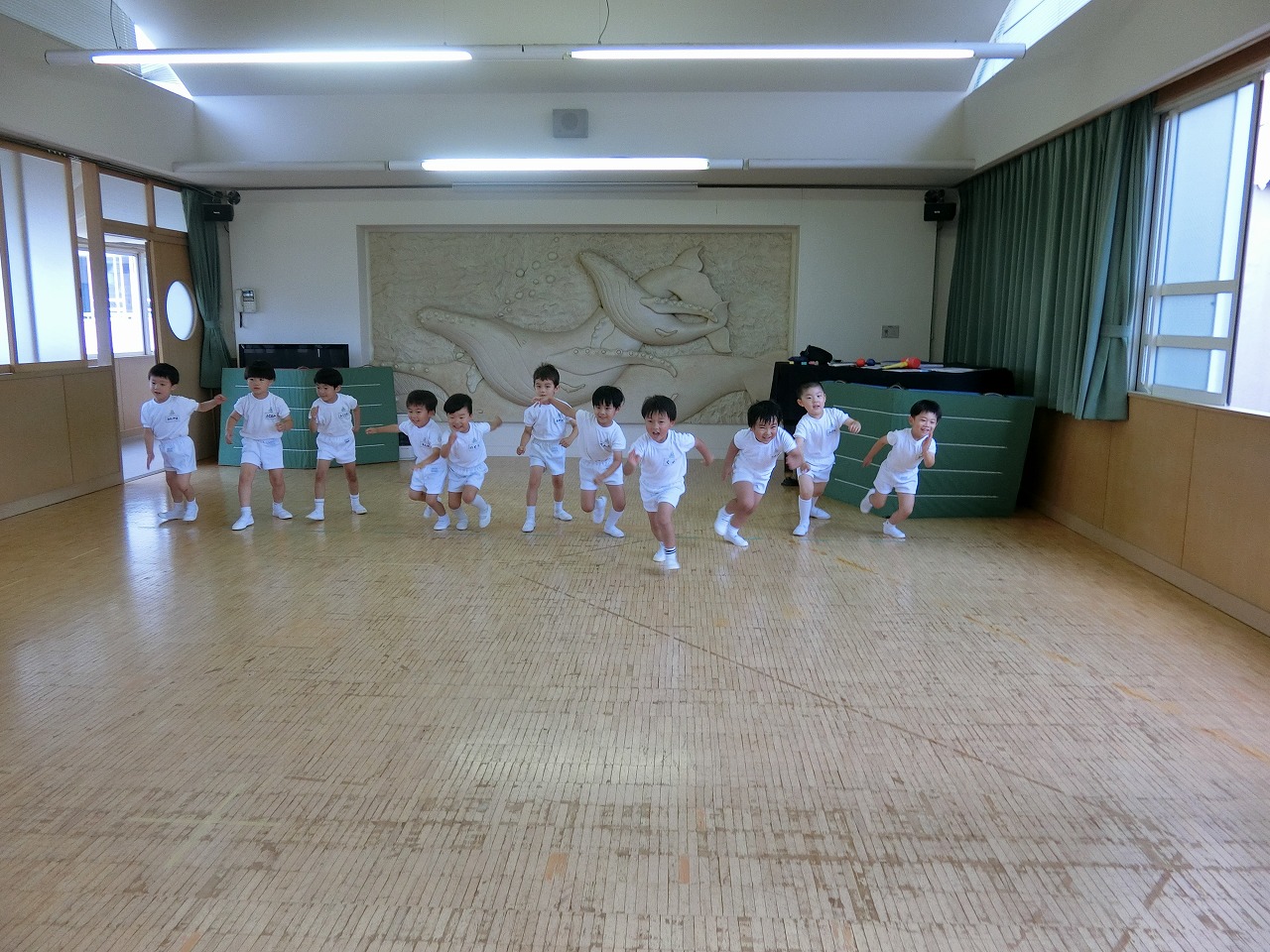 ぴょんぴょん ジャンプをしたり、先生の動きを